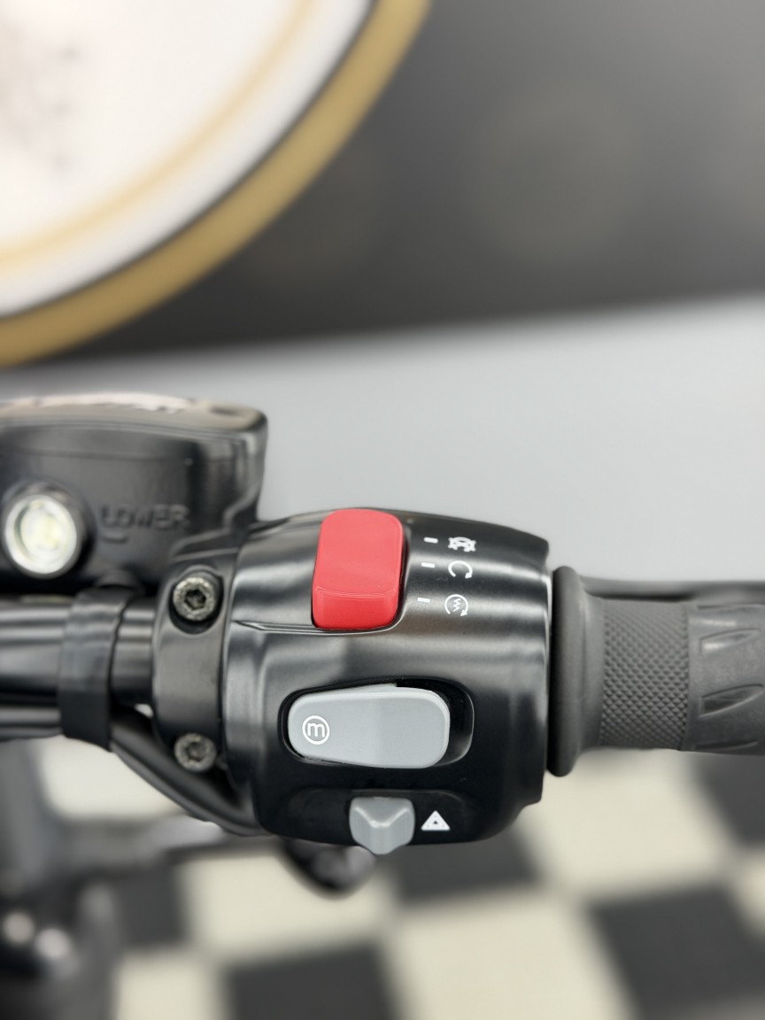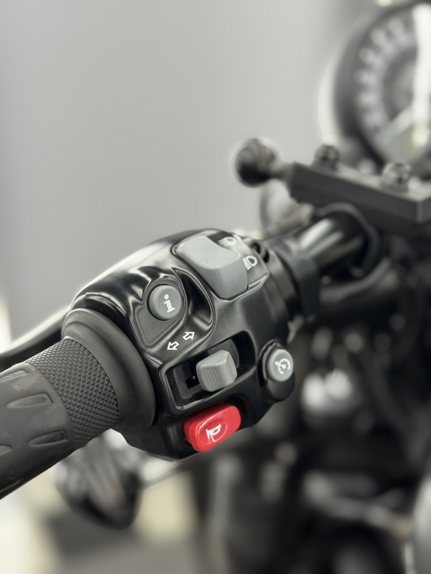 You also get other design benefits with the Black over the standard bobber, including beefier 47mm forks, twin Brembo 2 piston calipers & a chunky 16” front wheel. The 1200cc High Torque parallel twin engine with 270-degree crank is coupled to a crisp 6 speed gearbox. The package gives effortless smooth acceleration all through the rev-range with a peak power of 77 HP & peak torque of 106 Nm, it suits the feel of the Bobber perfectly. This example also benefits from the addition of an X-pipe which saves weight & also gives a throaty soundtrack backwards through the twin slash cut cans.