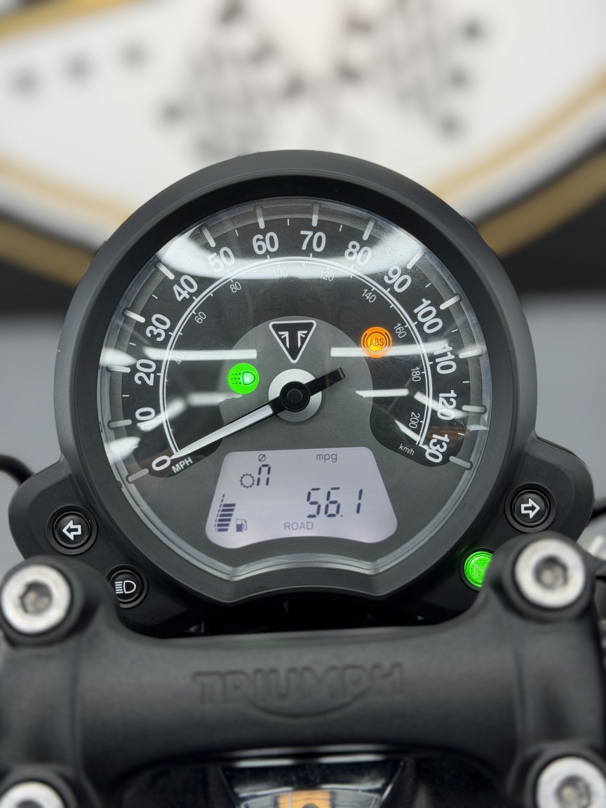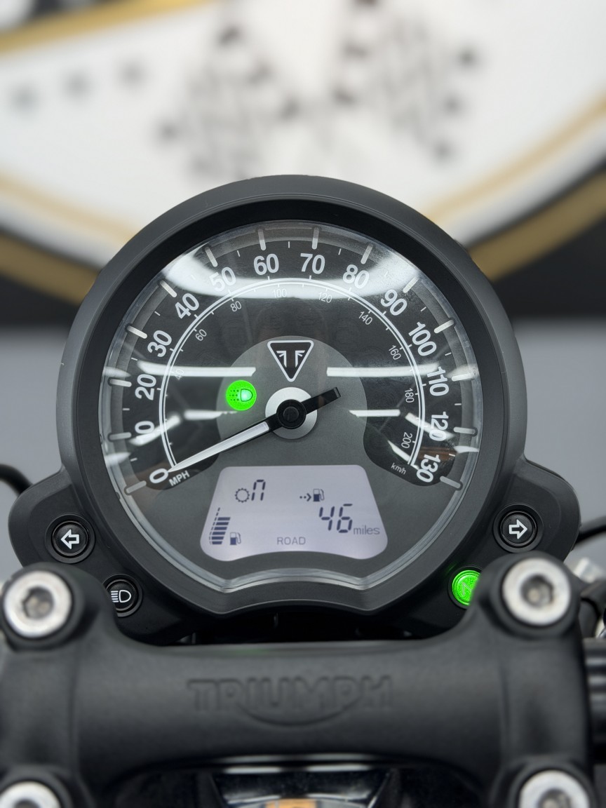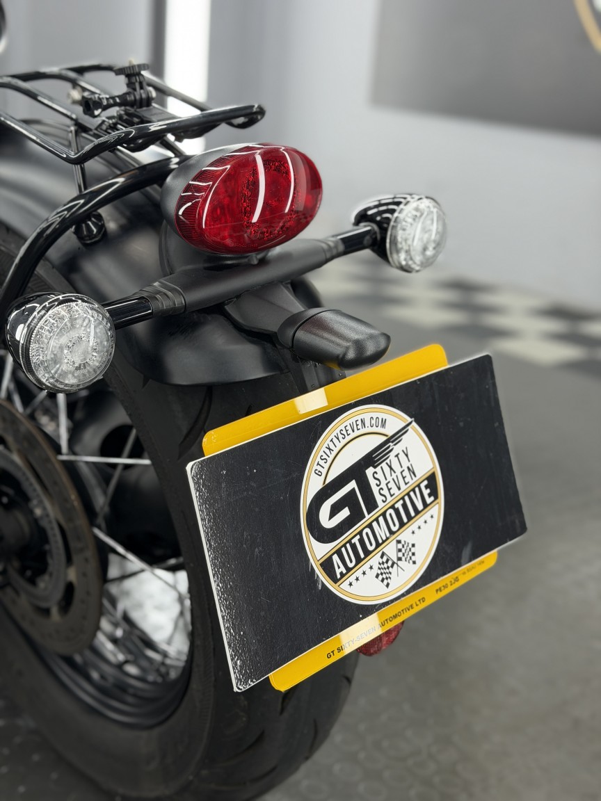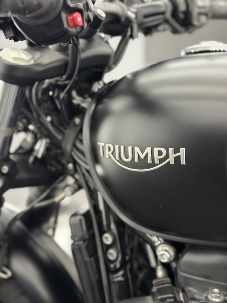 We are absolutely thrilled to be able to offer this stunning British Motorcycle out to the market! This example of a 2018 Triumph Bonneville Bobber Black 1200 is finished in Matte Black & has covered just 5,300 miles from new. It has been owned by our director since 2022 & has enjoyed just 1600 miles of dry weather use in those 4 years & dry stored. The visual design of the Bobber Black is just pure wonderful stripped back nostalgia, with its gorgeous floating single seat & spoked wheels. The Triumph engineers also built in some neat features including ride modes, ABS & 1 touch cruise control. A small but notable aftermarket addition is the rear mudguard luggage rack in Gloss Black, turning it into a bike that can actually then tour, and look damn good whilst it does it!
